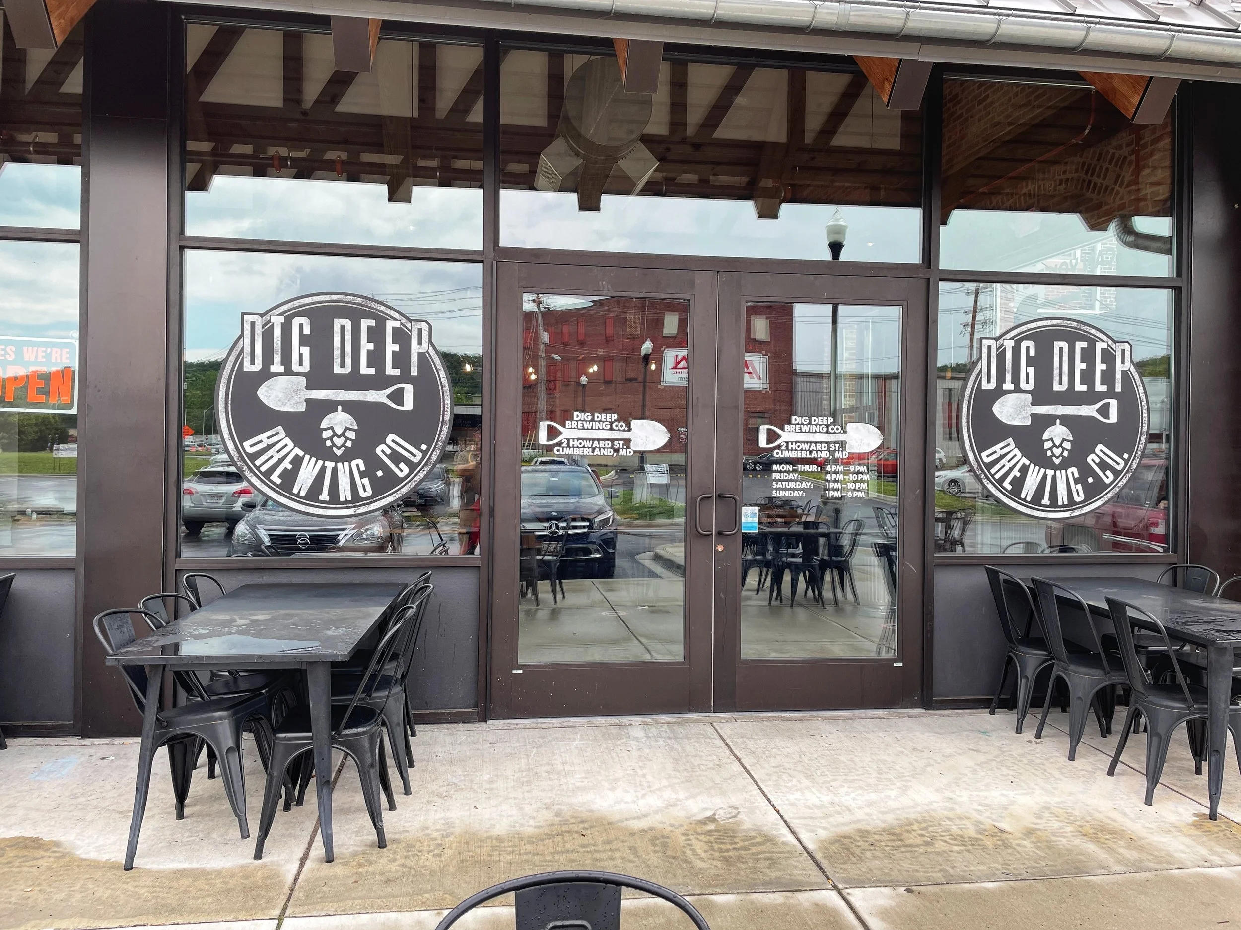 Dig Deep Brewing (Cumberland, MD) officially opened September 13, 2019. Located in the heart of Cumberland in the historic Footer Dye Works Building, they are conveniently located with easy access to recreational attractions such as the C&O Canal and the Great Allegheny Passage trail (Cumberland to Pittsburgh). I dropped in for a pint and had a chance to talk with Robert Dettinburn, Marcus Rowley, and Lydia Savramis.