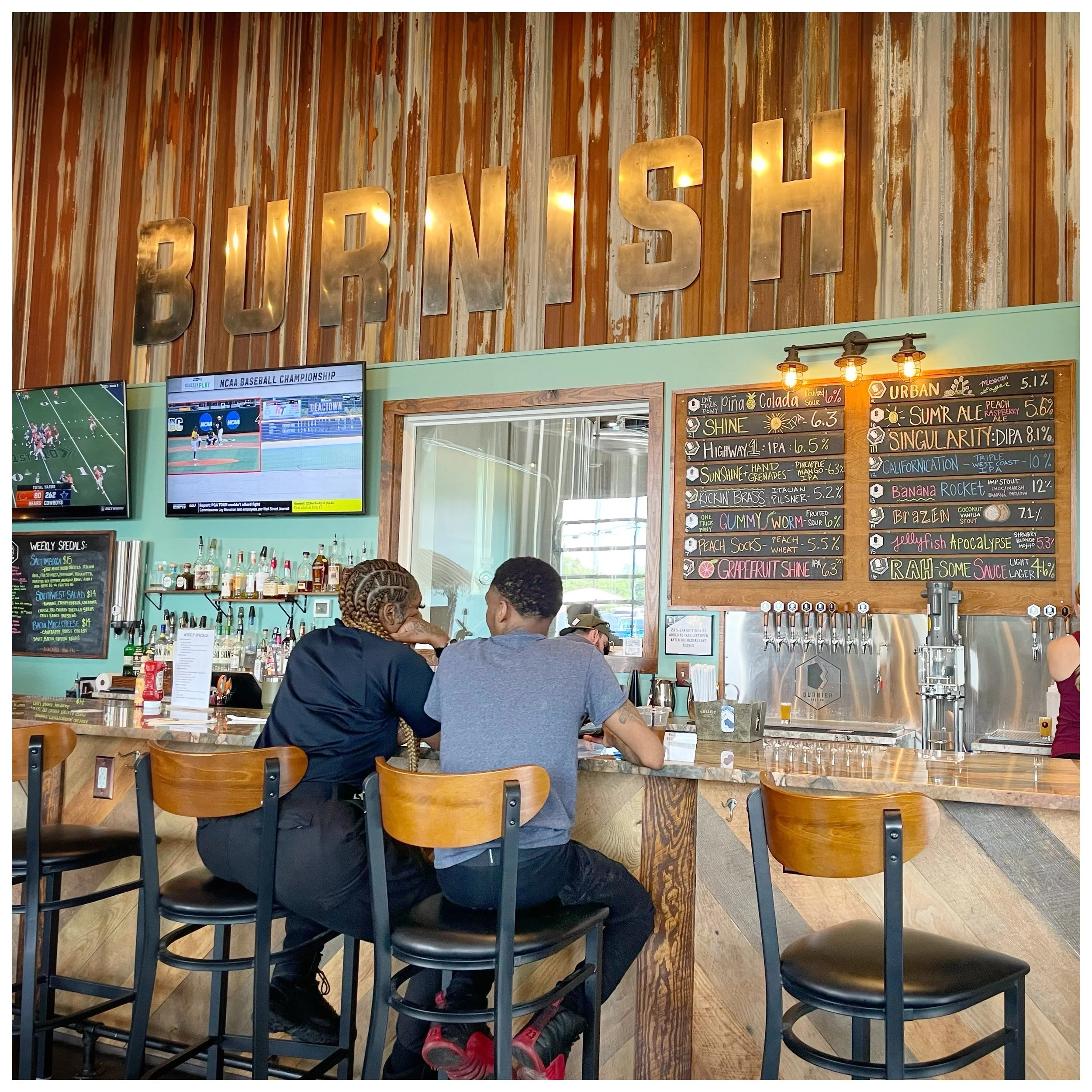 Burnish signature beers include Shine IPA and Roy Light, a gateway to craft beer for those that may only know light American lagers. At the taproom they pour an array of IPAs, sours, and styles for all tastes currently including a couple of barrel-aged imperial stouts. For non-beer drinkers they offer wine, ciders, and seltzers.