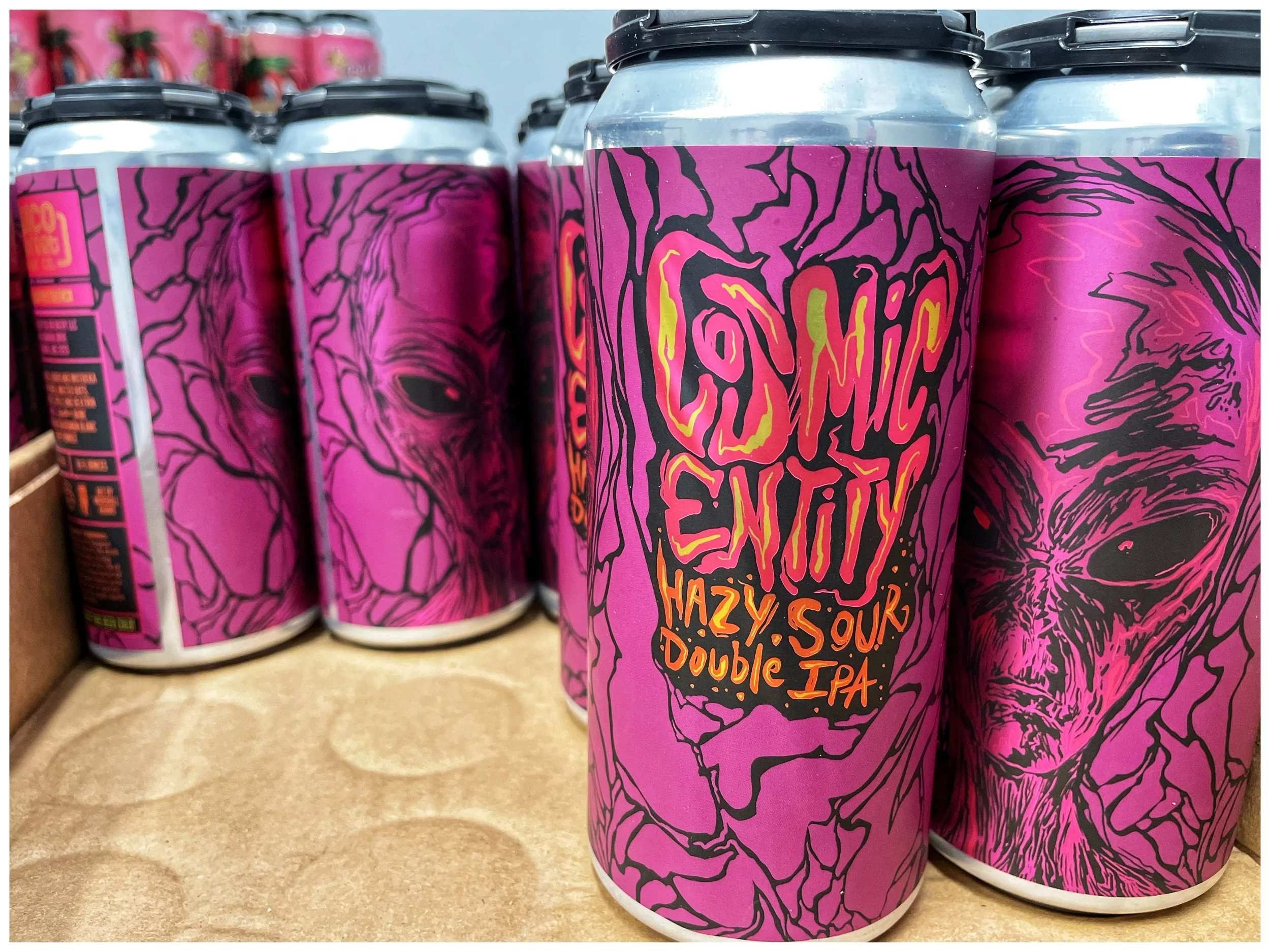 Jordan and Mike are very proud of their taproom. Marshall Adams is a well-known local artist whose work lines the taproom walls, the Beer Fridge, and can labels. Bold, bright, colorful, it grabs your attention and may not let go — and that is intentional. It is a statement and it seems customers are enjoying it as much as they do. The taproom is currently open Thursday through Sunday, and is dog friendly. Parking is not an issue, available on the street and at the parking garage adjacent to the taproom. Food trucks are onsite when the taproom is open.