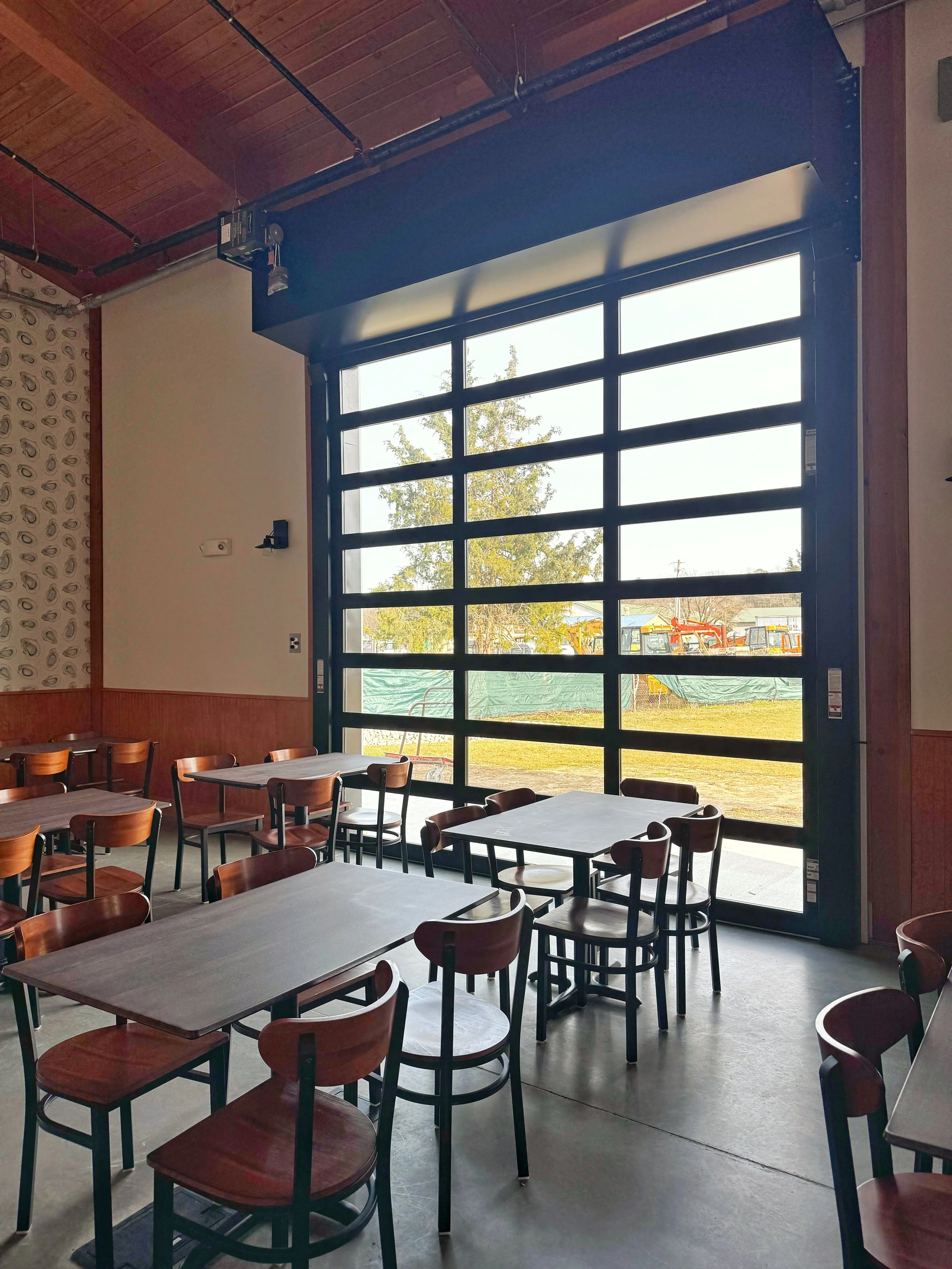 Eden Town seating and roll up door