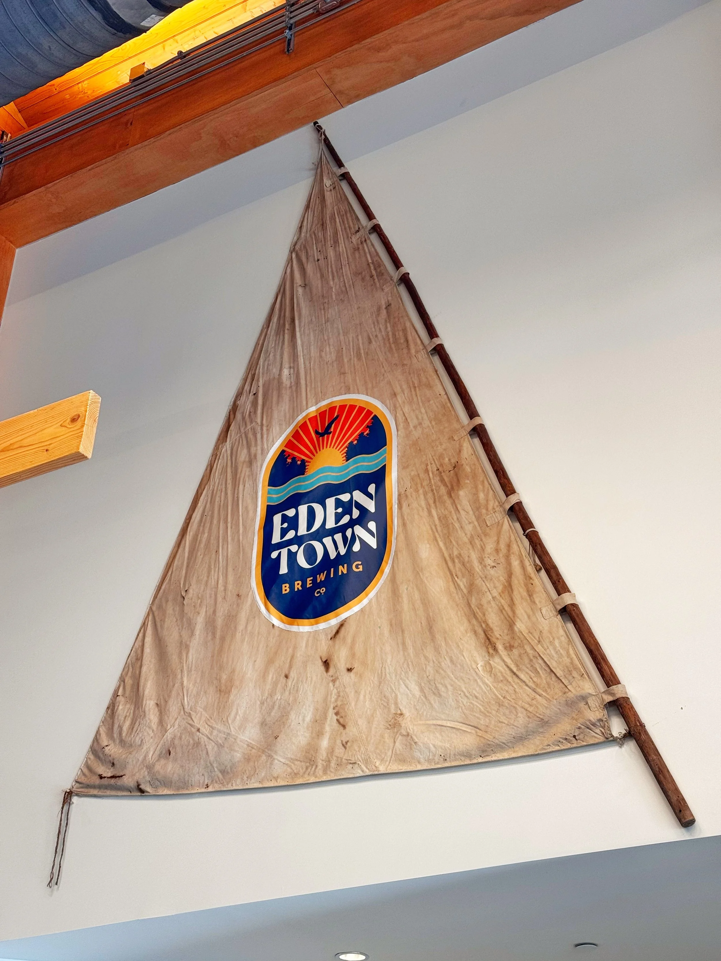 Another deeply personal and visually captivating element is the boat sail hanging in the taproom. This isn't just decor; it's a family heirloom. Crafted by Sarah's grandfather, it once graced a sailboat on the Choptank River. Later, it was repurposed for a political campaign, bearing the stitched letters "Dale Minner for Clerk of Court" for Sarah’s father, who served Caroline County for 35 years. Now, adorned with the Eden Town Brewing logo, the sail fits the space with uncanny perfection, a testament to serendipity and a rich family history.