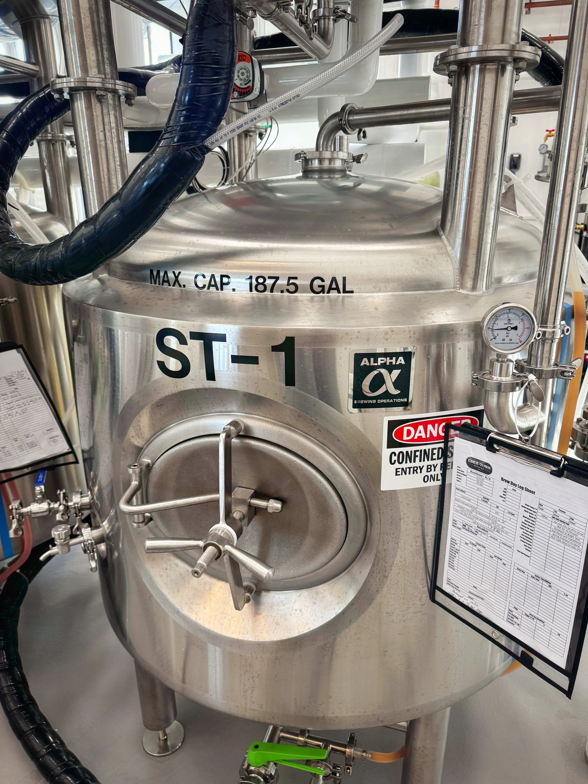 The brewer at Eden Town Brewing is Don Lewis. He has extensive experience working on commercial systems, having previously worked at Blue Earl Brewing (now closed) in Smyrna, Delaware, then Revelation Craft Brewing for about four or five years, and briefly at Ten Eyck Brewing near Centreville, Maryland, before joining Eden Town. Don is also responsible for making the brewery's artisian root beer.