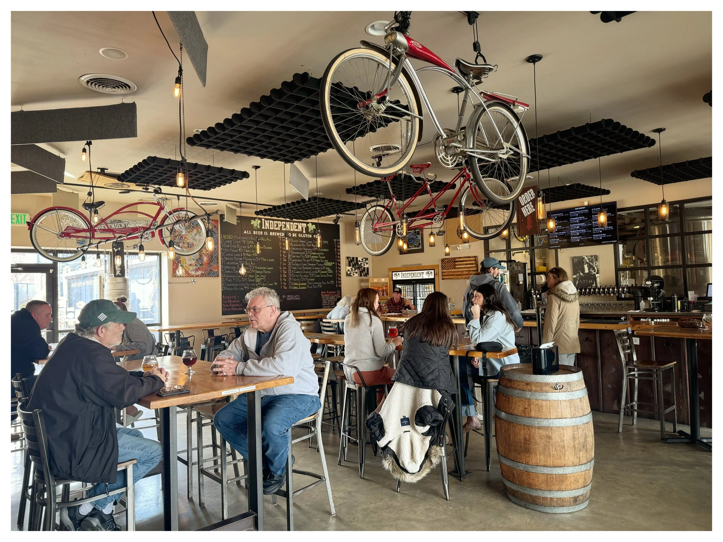 To Independent Brewing, a sense of community is important. It is strategically located near the Ma and Pa Trail. Bikes and cycling are a theme in the taproom and outside seating.